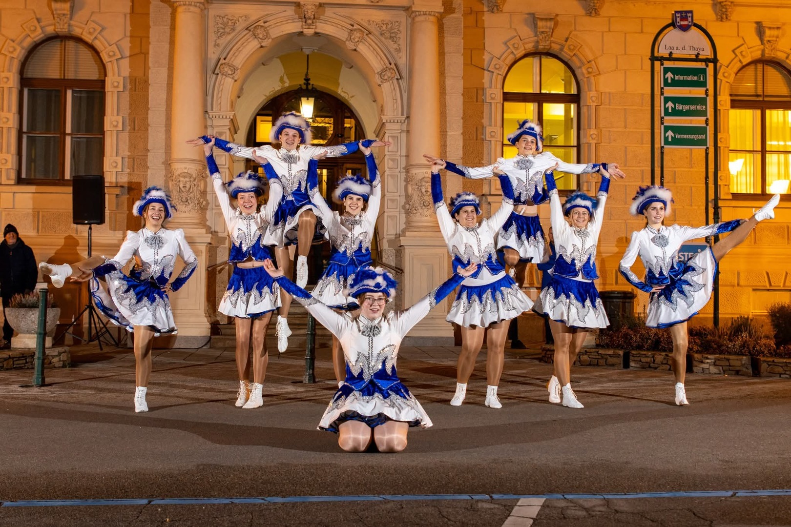 Dabei wurde wieder symbolisch der Stadtschlüssel durch Bürgermeisterin Brigitte Ribisch übergeben. Nachdem die Gardemädels einige Darbietungen gezeigt hatten, folgte ein gemeinsamer Fackelzug, musikalisch begleitet von der Stadtkapelle Laa. Während der Veranstaltung gab es gratis Glühwein, Punsch und Tee zum Aufwärmen.